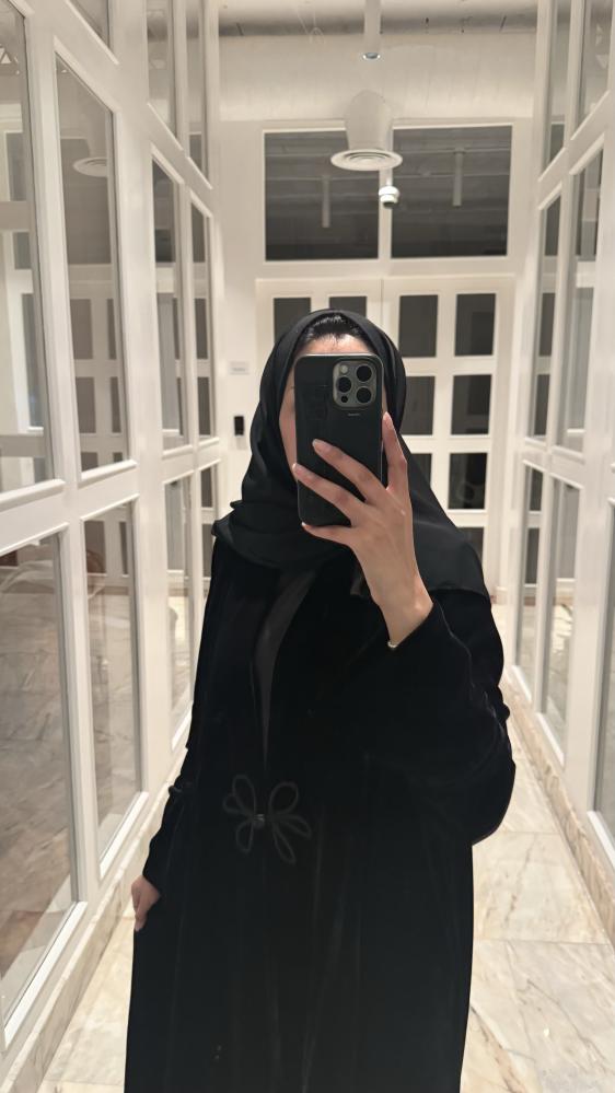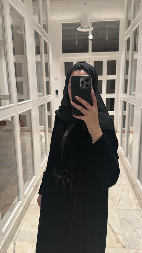 القماش : مخمل مع فستان ساتان داخلي متصل بالعبايه