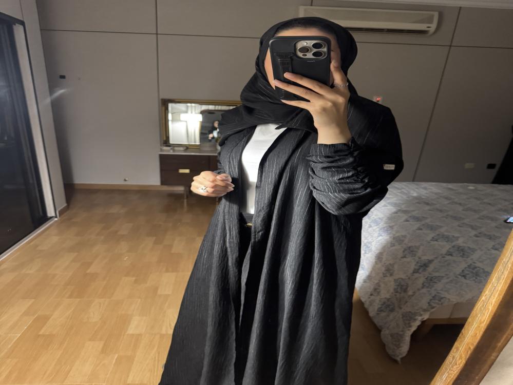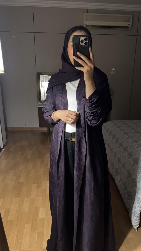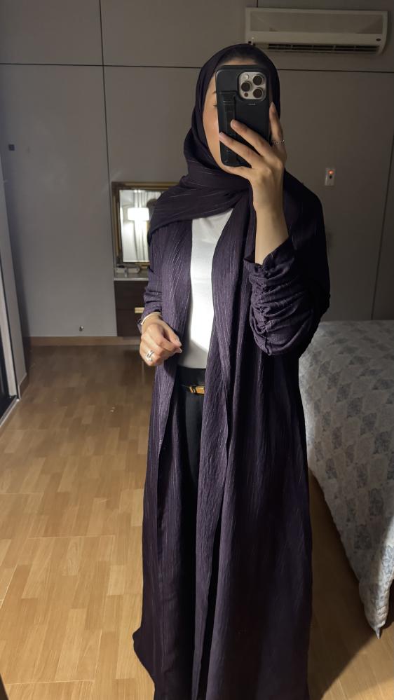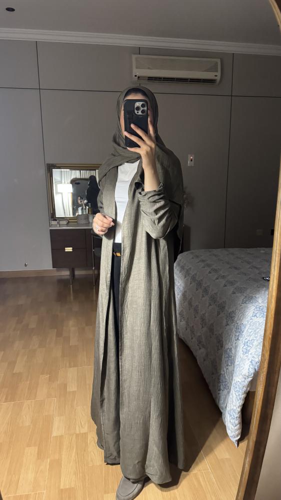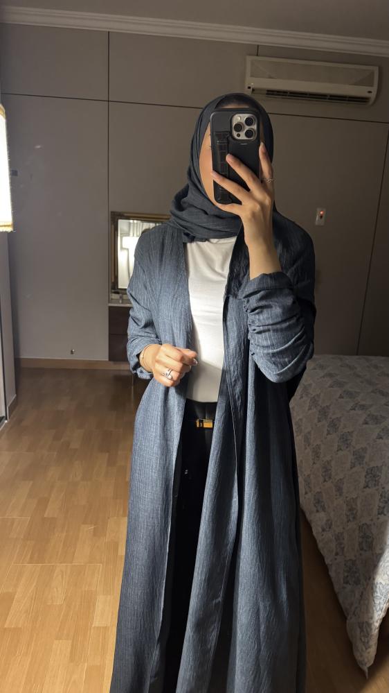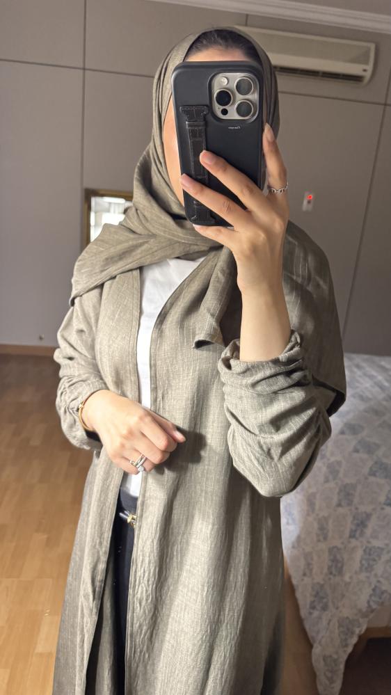 القماش : لينن مقلّم مع طرحة بنفس لون القماش
